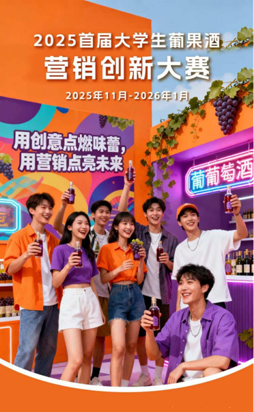 大学生葡果酒营销创新大赛以“青春正当红”为主题,聚焦葡果酒行业的品牌年轻化与市场销售转型,旨在激发大学生的创新思维与实践能力,为传统酒类产业注入年轻化、潮流化的新动能。
